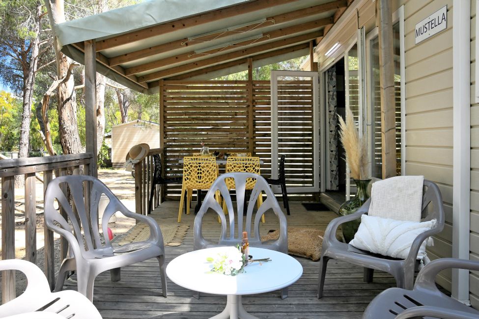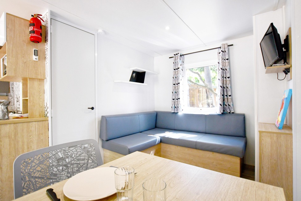 Dieses wunderschöne, klimatisierte Mobilheim mit einer Fläche von 32 m2 bietet Platz für 4 bis 6 Personen.