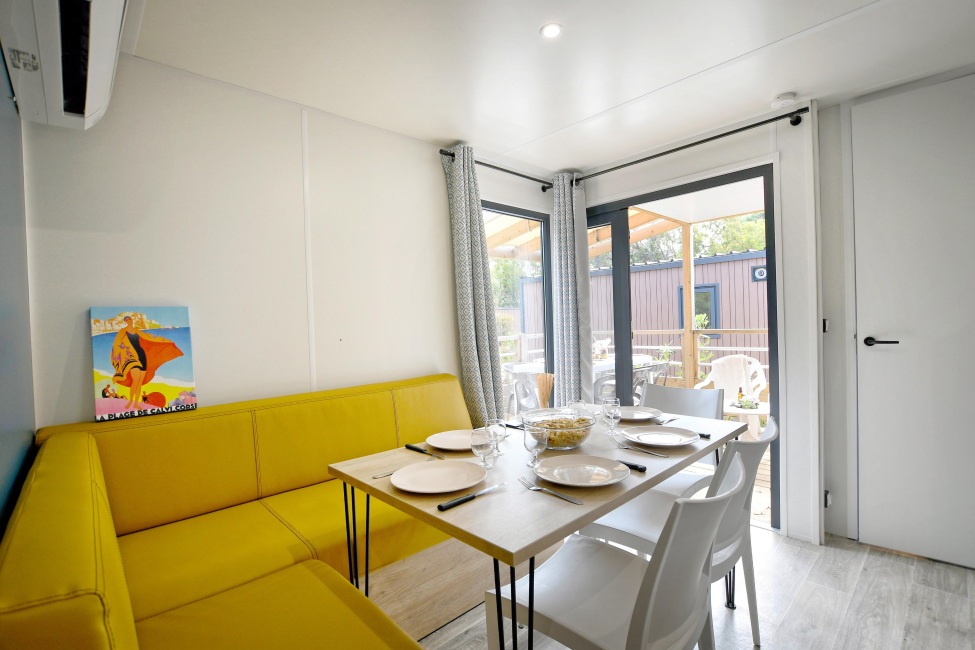 Dieses Mobilheim mit einer Wohnfläche von 28m² und 3 Schlafzimmern wird Ihren Aufenthalt zu mehreren zufriedenstellen.